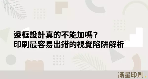 簡單講,印刷不是精密機械加工,也不是逐張手工校正,所以「完全對位」這件事,現實中幾乎無法保證。如果設計中有邊框,那就等於你把一個高風險區放大出來,讓任何一點偏差都變得顯而易見。