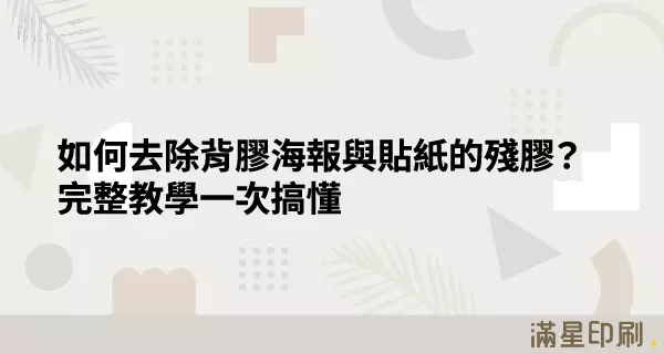 在日常生活中,無論是佈置活動現場、店面裝潢,還是個人手作創作,背膠海報和貼紙都是非常常見的印刷品。然而,當這些背膠產品需要拆除或更換時,最令人頭痛的問題莫過於——殘膠!如果不處理乾淨,不僅影響美觀,還可能損壞表面。今天就來跟大家分享,如何有效、快速又安全地去除這些惱人的殘膠。