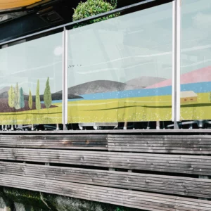 半透明PVC背膠具有優異的透光性,適用於櫥窗設計、玻璃隔間或展覽空間,提供柔和的視覺效果、增強視覺層次。適用於展示品牌風格或空間裝飾。