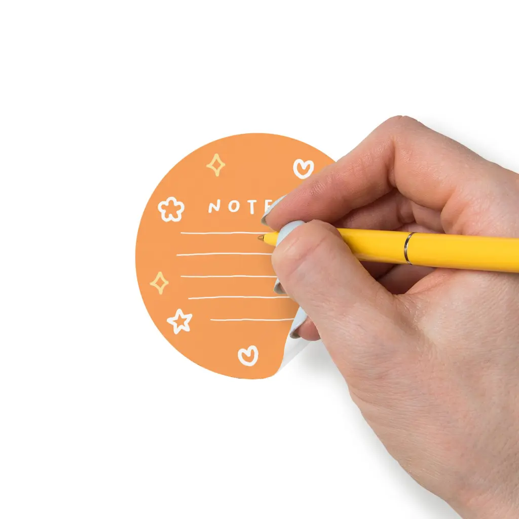 由於模造紙不支援任何上膜加工,表面保持原始紙張質地,印刷後的圖文將直接呈現在紙面上。這樣的結構讓貼紙保有可書寫的特性,使用原子筆、中性筆、鉛筆皆可輕鬆在貼紙上標記,不論是出貨前的補充資訊、手寫備註或臨時說明,都能靈活運用。
