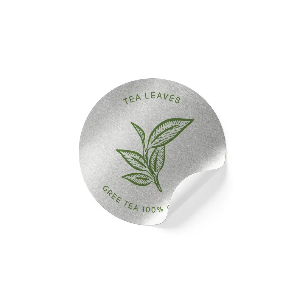 銀箔材質具備良好的平整度與挺度,在印刷時可穩定呈現圖文內容,搭配彩色設計可製作出對比鮮明、視覺強烈的標籤效果。貼紙表面的金屬質地本身即具特色,印製線條、色塊、圖騰等皆能因底材反光而產生不同角度的視覺變化。此特性常被應用於品牌標識、產品名稱、主視覺設計等位置,強調辨識度與質感。