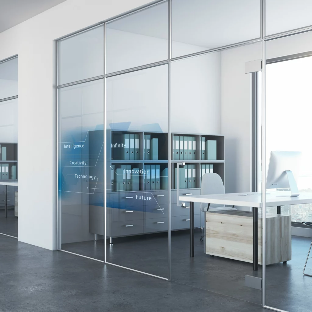 全透PVC背膠+白墨是一款具有高透明度的貼紙材質,適合應用於玻璃、壓克力或其他透明材質表面。貼上後能保留底層透視感,使圖文彷彿浮於表面,適合運用在需要光線穿透、視覺輕透或保留原有背景的空間中,例如玻璃隔間、櫥窗、門面標示或透明看板。