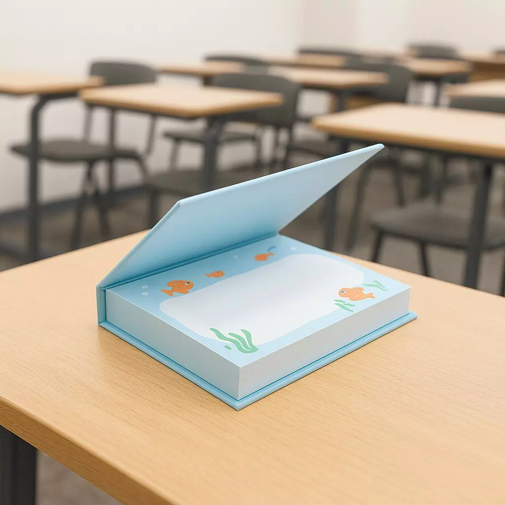 內頁採用80g道林紙,紙質平滑、不過於厚重,具備良好書寫表現。便條紙每本約 200 張,可選擇空白內頁或客製彩色印刷版型。若進行彩印,可依品牌需求設計功能欄位、橫線筆記區或工作標題欄等,讓這款便條紙兼具實用與視覺一致性。